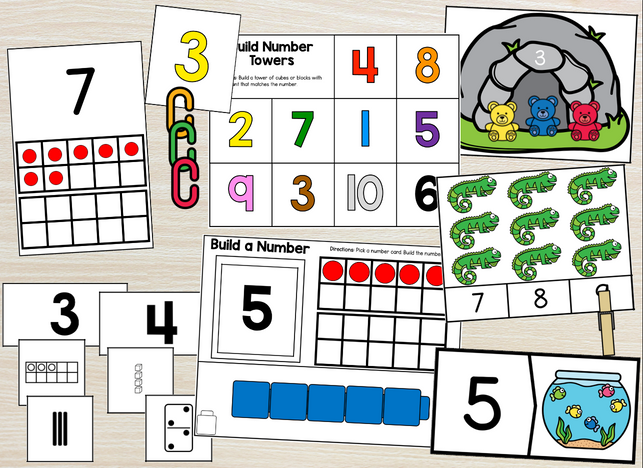 You can download 46 ready to print skill-based math and literacy centers for kindergarten.